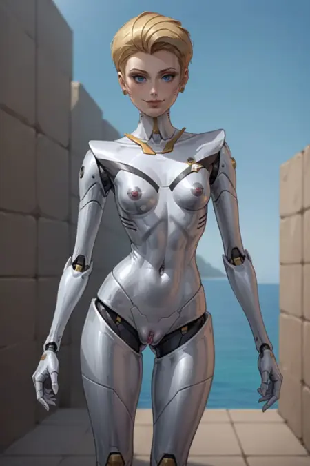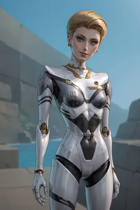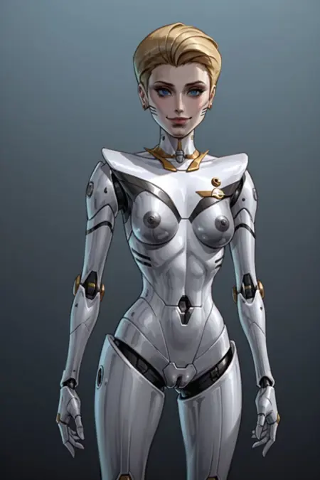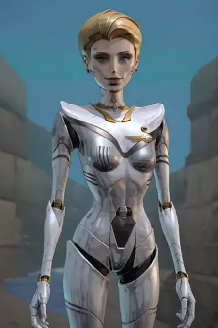 Maxine appears is ReBoot Season 3 Episode 2, she appears as a Sprite who is the physical embodiment of an Internet search engine, Maxine is like a cross between a flight attendant and a game show hostess. She looks like a humanoid robot built out of chrome and gold and her function is as a guide and pilot through the Internet. I absolutely loved her character design though so I trained a LoRA on her.