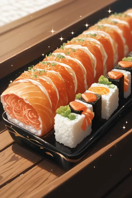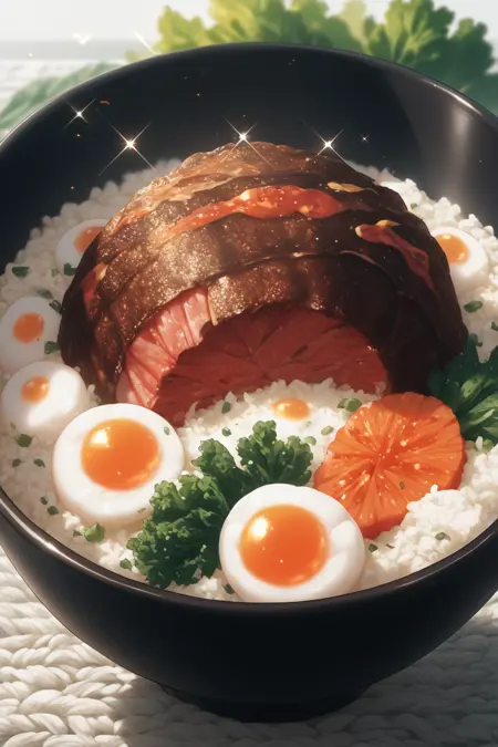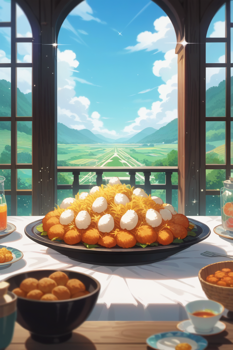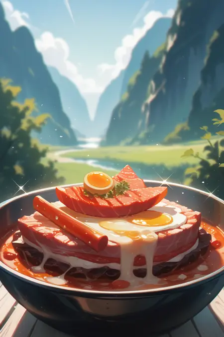 ILXL = sparkling food focus, dafoodie, sparkle, anime screencap,