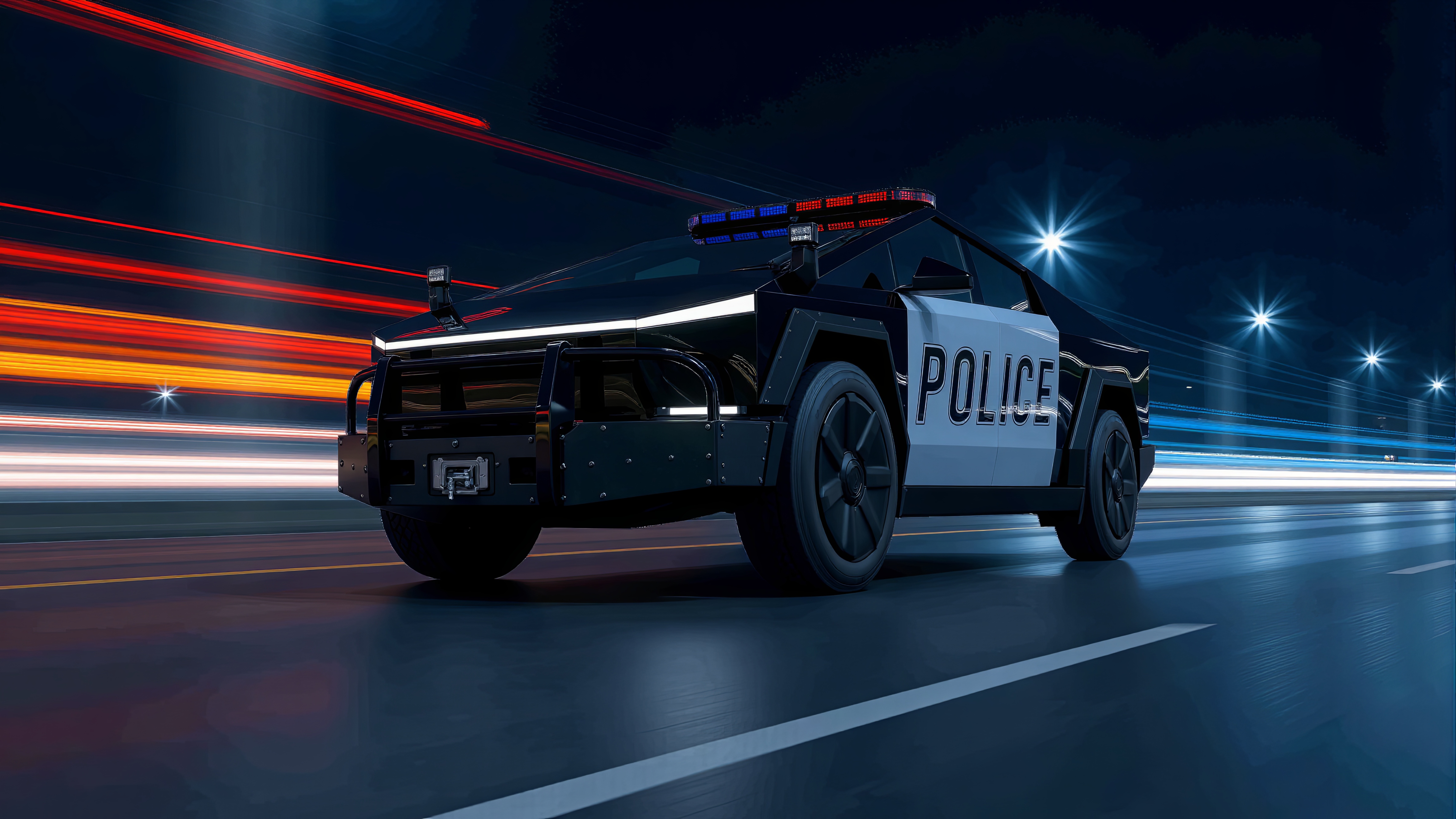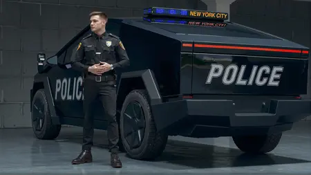 테슬라 사이버트럭 경찰 모델은 차량을 다양한 각도에서 촬영한 12장의 이미지로 학습되어, 창의적 프로젝트에 매우 정확한 사진처럼 사실적인 이 차량 이미지를 생성할 수 있도록 합니다.