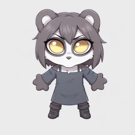 프롬프트: Maxine-vkstickrs, 퓨리, 노란 눈, 검은 회색 털, 둥근 귀, 짙은 파란색 썬드레스, 어깨 노출, 긴 소매, 하얀 얼굴, 짧은 머리.