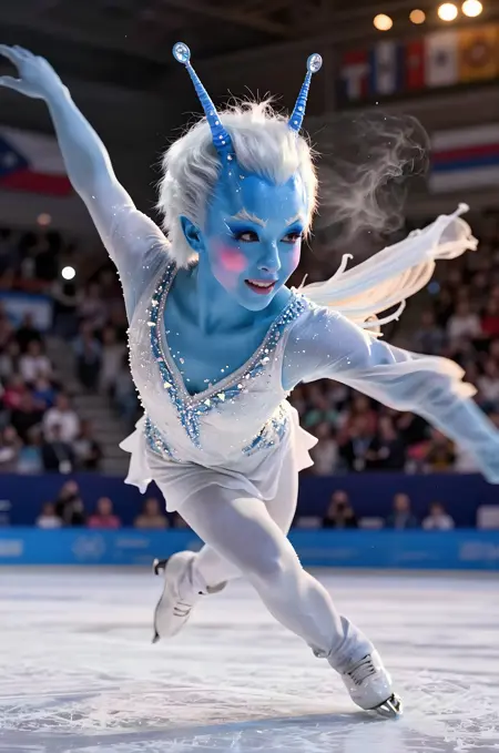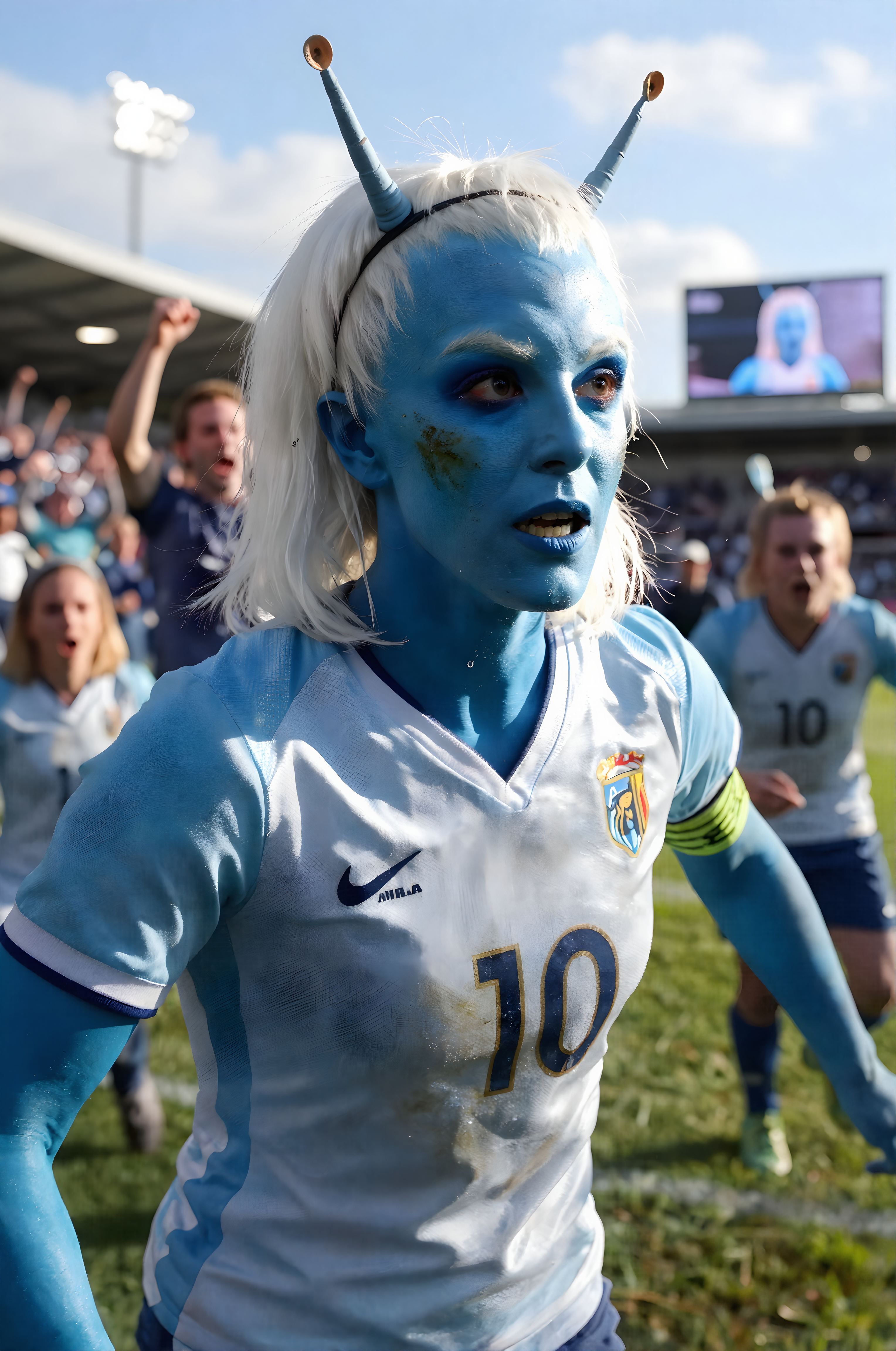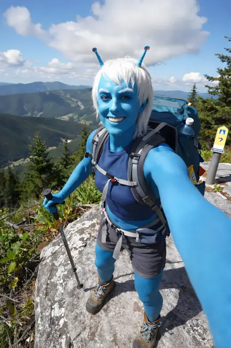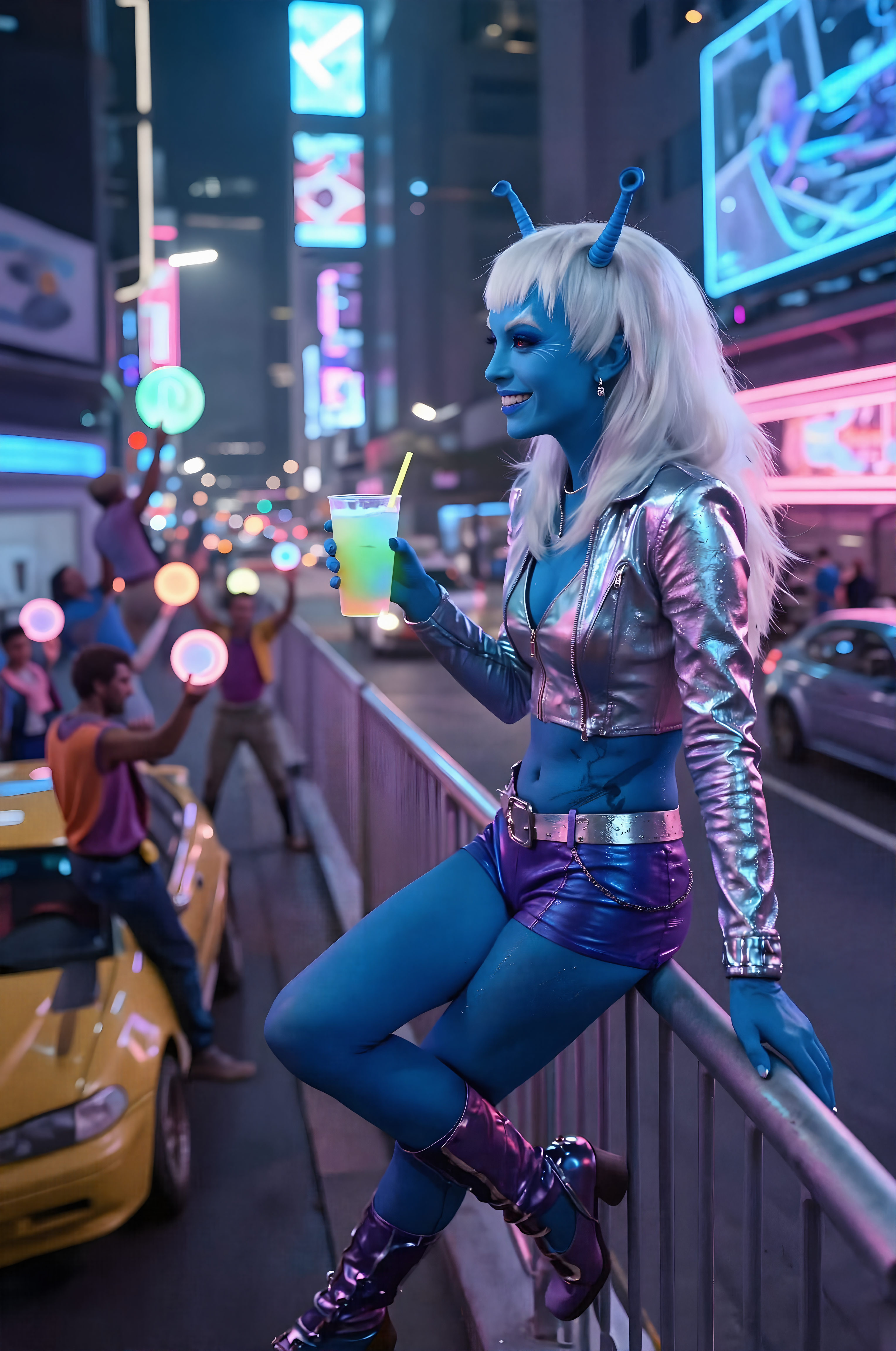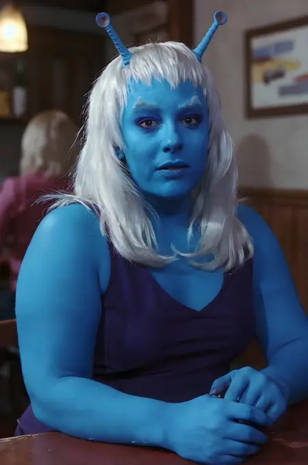触发词应类似于“拥有蓝色皮肤和触角的安多里安人”。由于这些模型训练时未包含默认服装,因此在提示中明确指定服装是个不错的主意。
