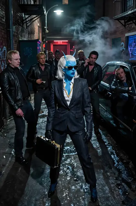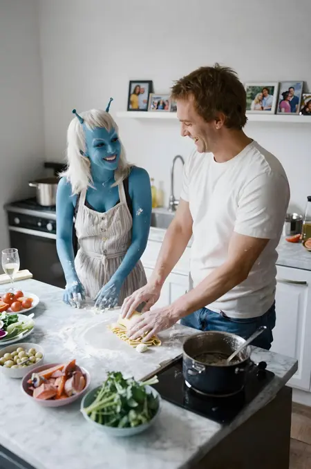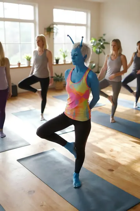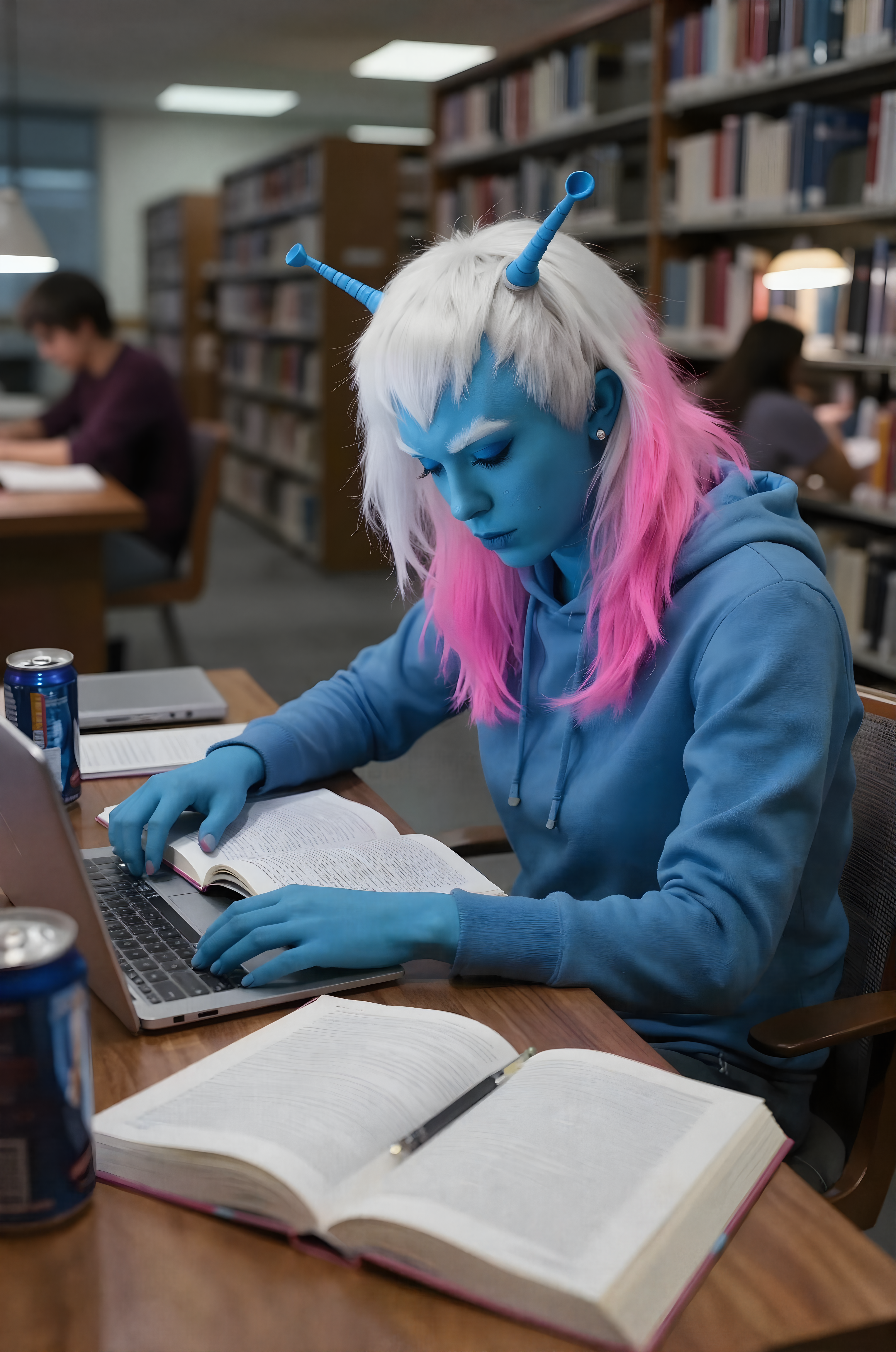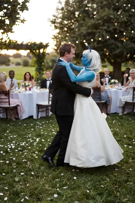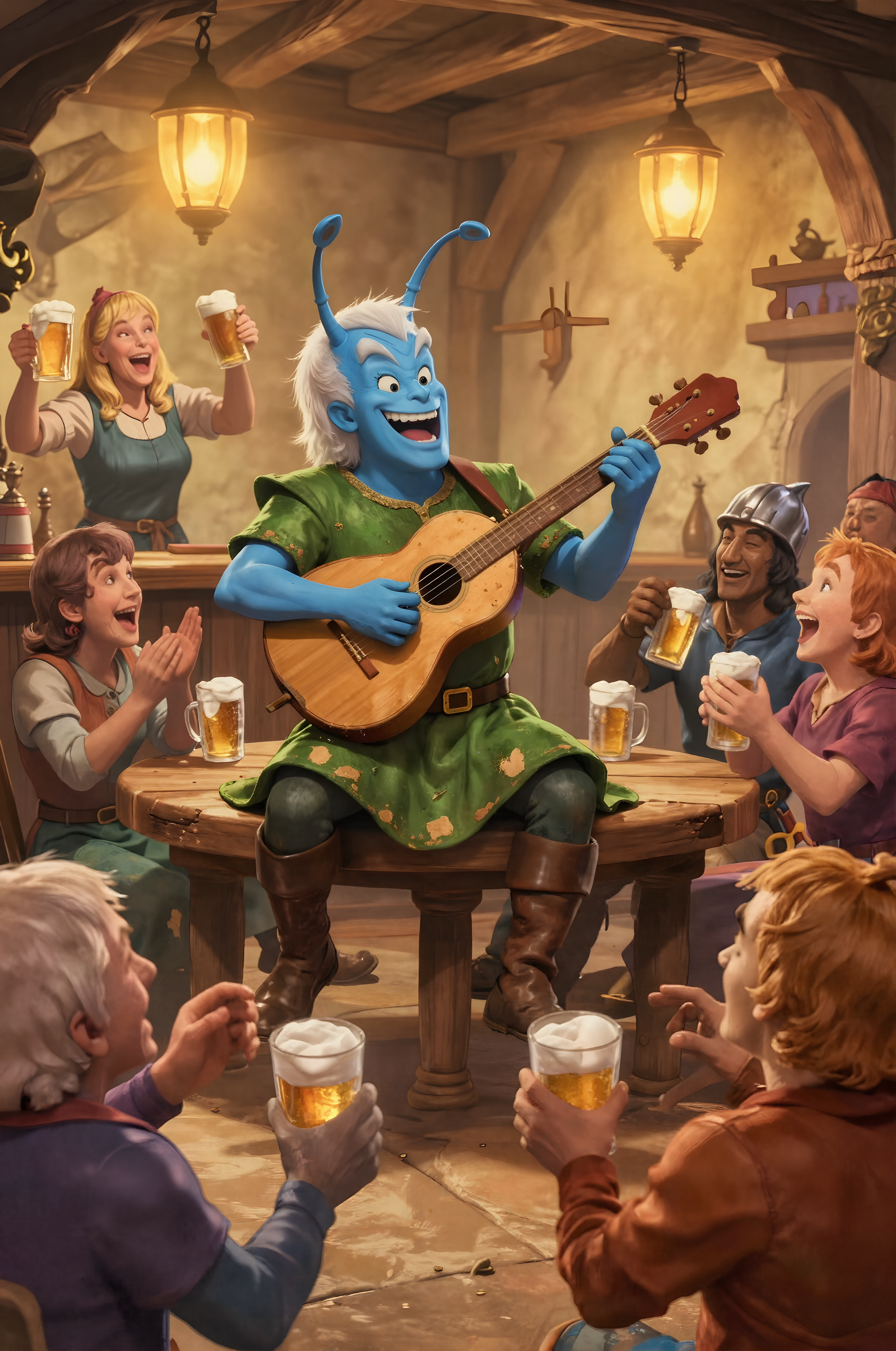 触发词应类似于“拥有蓝色皮肤和触角的安多里安人”。由于这些模型训练时未包含默认服装,因此在提示中明确指定服装是个不错的主意。