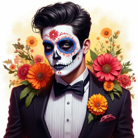 이 LoRA는 칼라베라의 생동감 있고 상징적인 스타일을 강화하여 죽은 자의 날 이미지의 화려한 정수를 끌어냅니다.