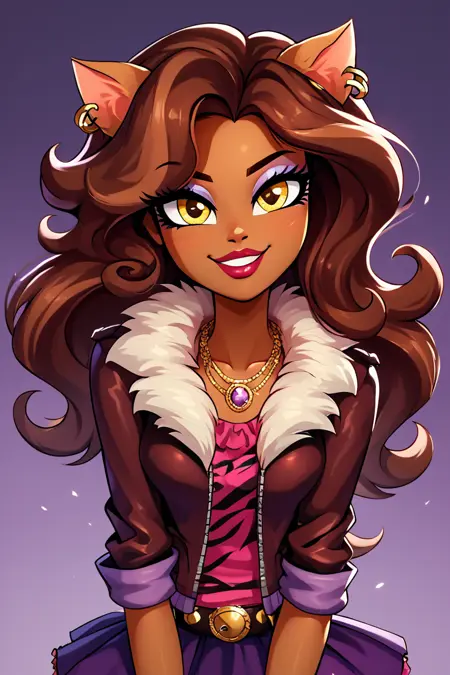 | 训练词汇 | zzClawdeen, long hair, brown hair, dark skin, animal ears, yellow eyes, 已复制! zzClawdeen, long hair, brown hair, dark skin, animal ears, yellow eyes, jewelry, earrings, makeup, lipstick, eyeshadow, jacket, skirt, belt, necklace, <lora:Clawdeen_MH_PDXL:0.8>,已复制! |