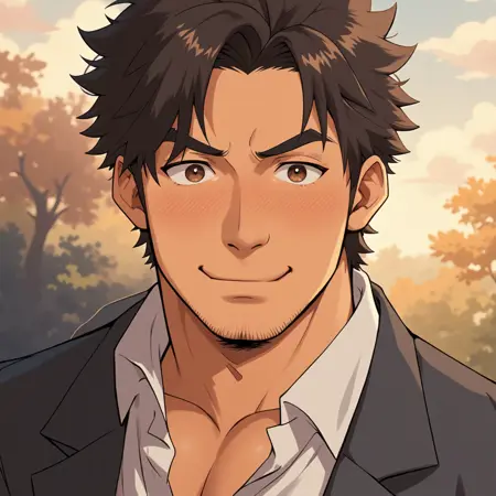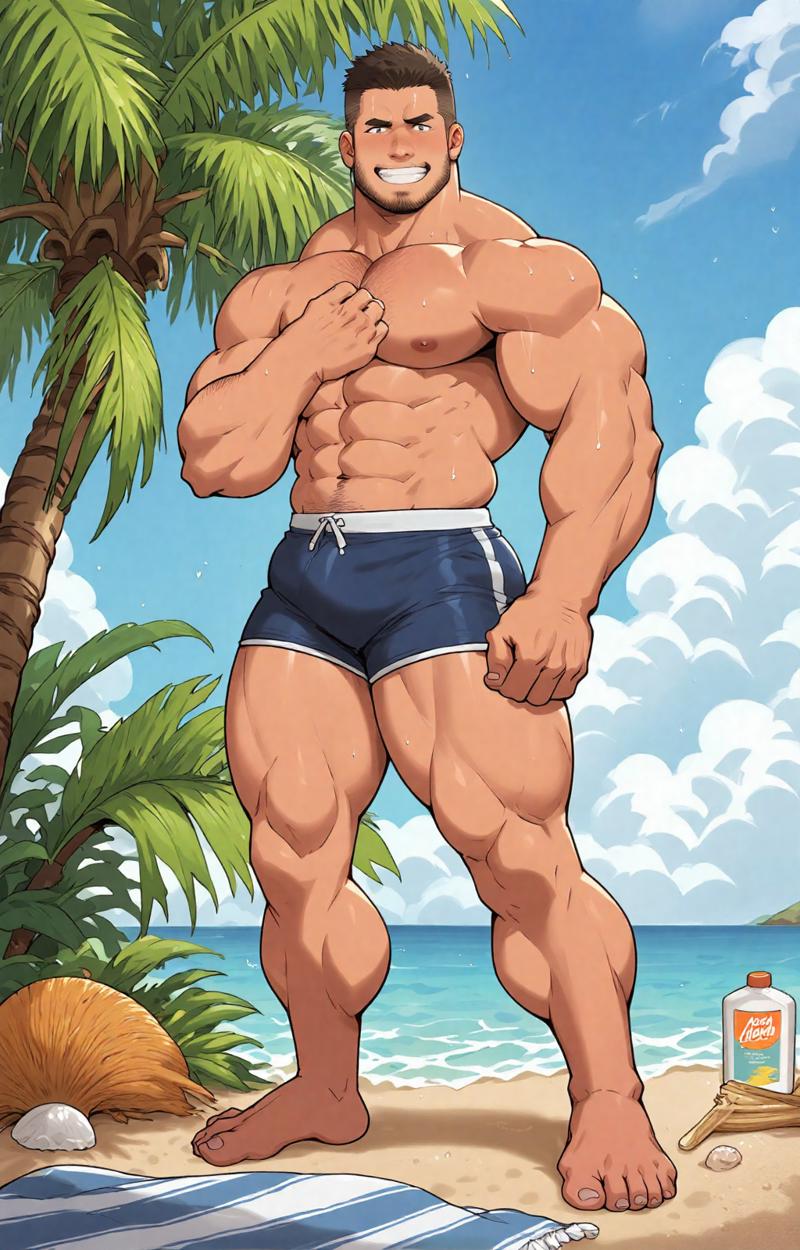 Use one of the words: digital illustration, anime style, muscle e.g.