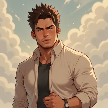 以下の単語のいずれかを使用:デジタルイラスト、アニメ風、筋肉 など