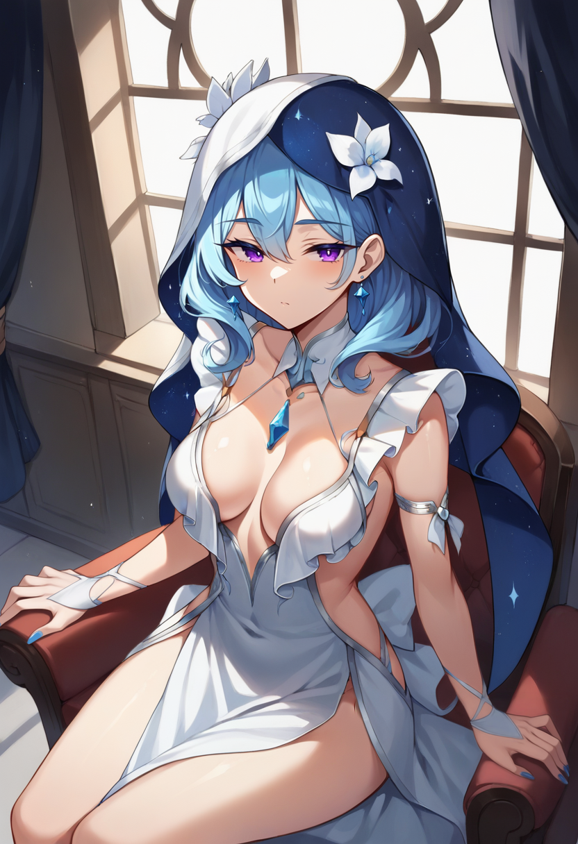 - shorekeeper \(wuthering waves\), 紫色眼睛,蓝色头发,