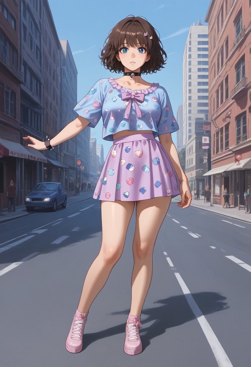 yami_kawaii, (어두운 색상)++, 오버사이즈 셔츠, 패턴, 티셔츠에 일러스트, 초커, 플랫폼 신발, 느슨한 양말