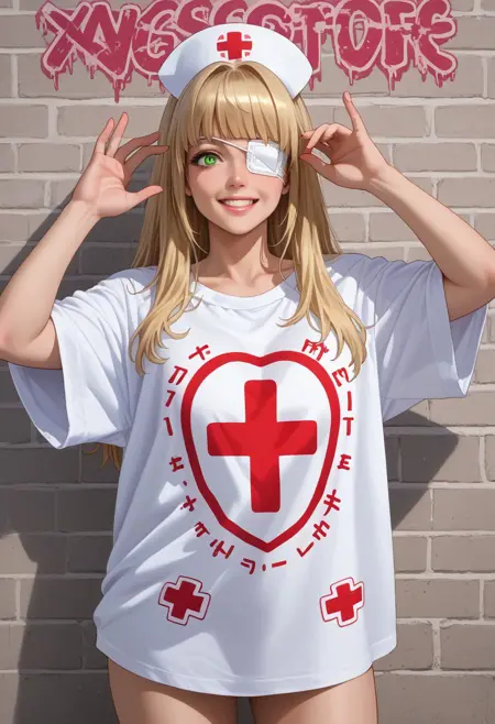 기본 색상은 어두운 색이나 밝은 색이며, 파스텔 톤의 일러스트나 액센트가 이를 대비합니다. 이름이 "병약한 귀여움"을 의미하므로, 이에 해당하는 이미지—병원 복장, 약, 붕대, 분홍색 피 등—을 기대할 수 있습니다.
