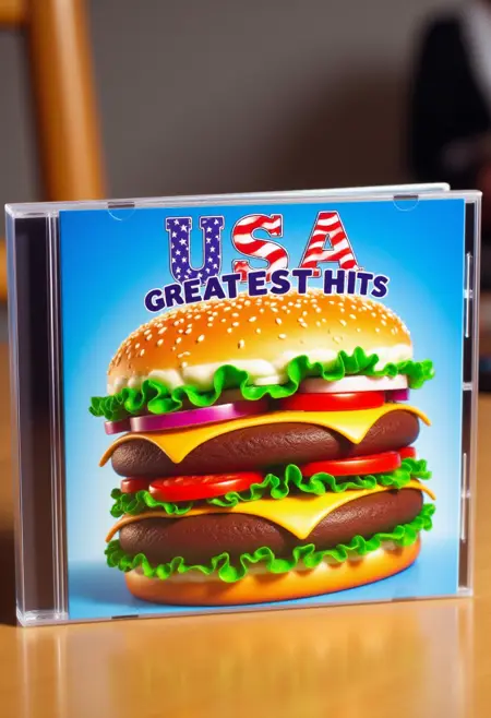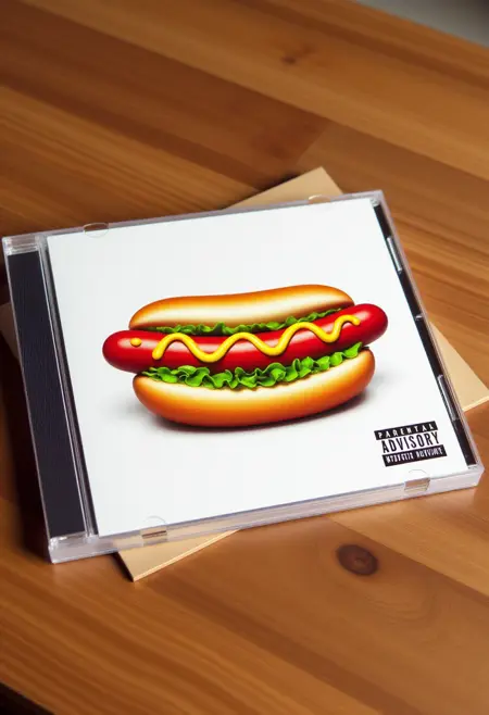 这是一张为(主题)风格专辑“(文本)”设计的CD盒照片,CD盒放置在(物体)上。封面艺术呈现(主题)。