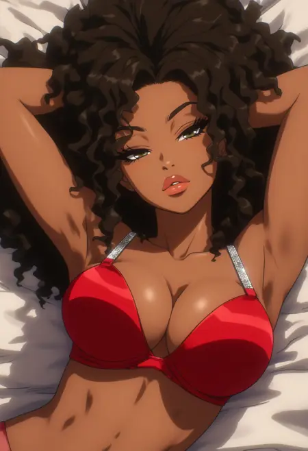 Suggested prompt: <color> bombshell satin bra, cleavage, <size> breasts