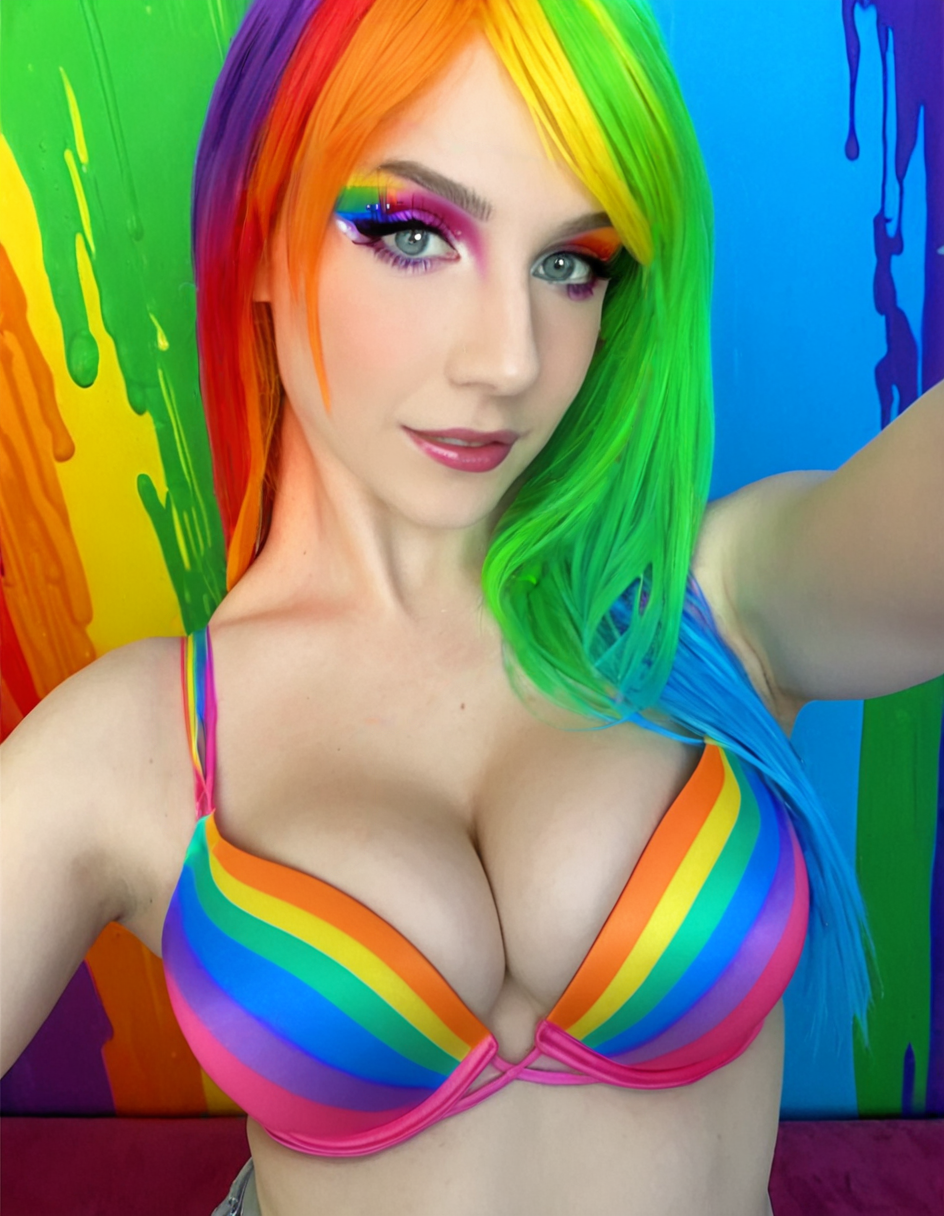 推荐提示:woman wearing a <color> bombshell bra accentuating her cleavage and <size> breasts