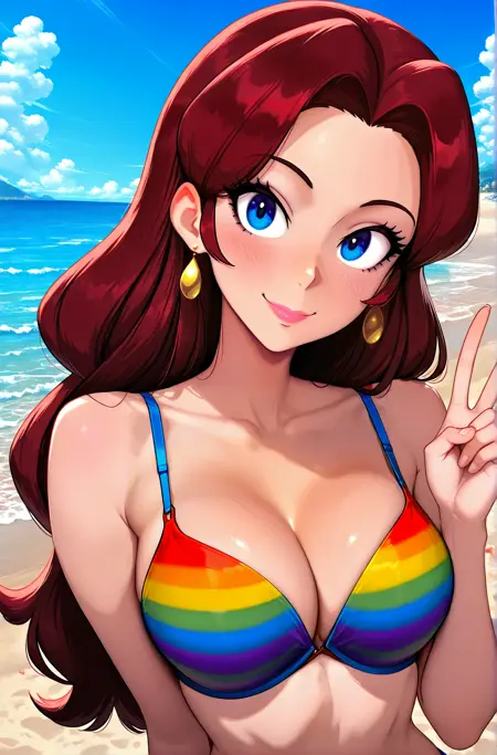 推荐提示:woman wearing a <color> bombshell bra accentuating her cleavage and <size> breasts