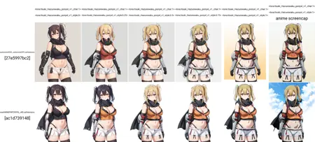 This time, I pruned the tags related to her hair and eyes, knowing that some people prefer shorter trigger words. However, this made these features less accurate. Maybe I should re-tag the hair and eyes of the characters in my next models...