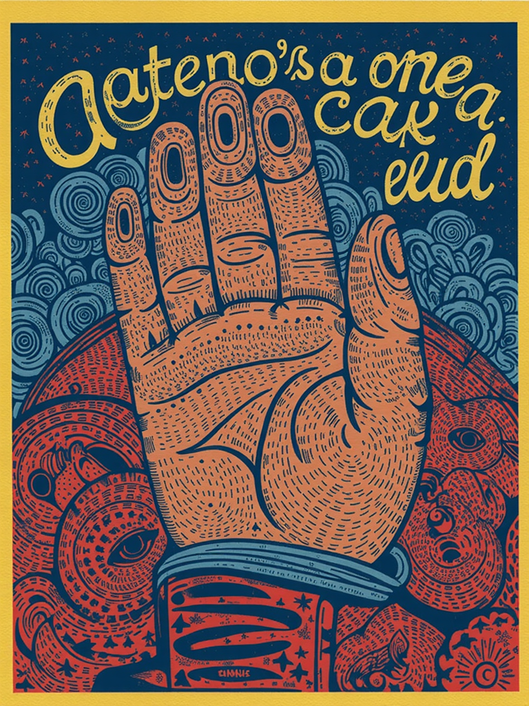 プロンプトのインスピレーション: ポスターアート, 手書き文字, カラベラ, 民芸アート, 花の装飾, パペル・ピカド, 繊細な装飾, 太陽と月