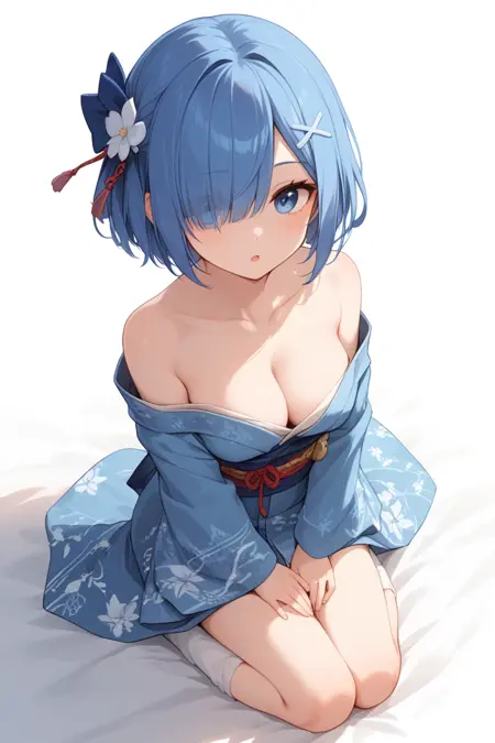 - 日式服装, 和服, 头发花朵, 花朵, 分离袖子, 宽袖, 白色和服, 腰带