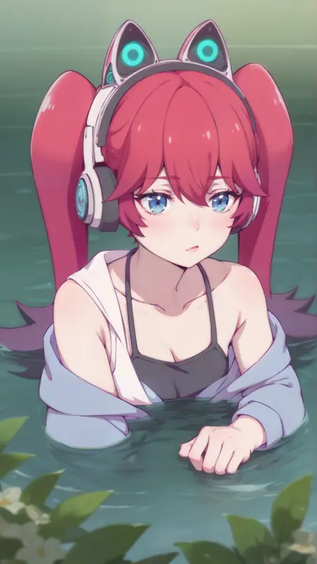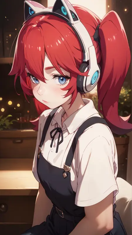권장 프롬프트: "amelia_irving,cat ear headphones, twintails,red hair, ... "
