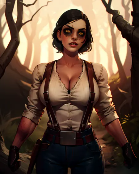 tHuntress, yellow eyes or black eyes, black sclera,