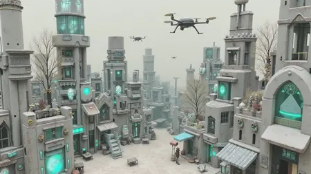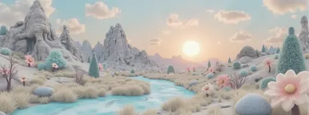 これにより、画像がふわふわで、明るくパステル調になります。また、主な色調は白と薄い青です。風景や都市の風景はミニチュアのセットのようになります。