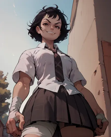 하얀 셔츠, 넥타이, 치마, 붕대, 신발,