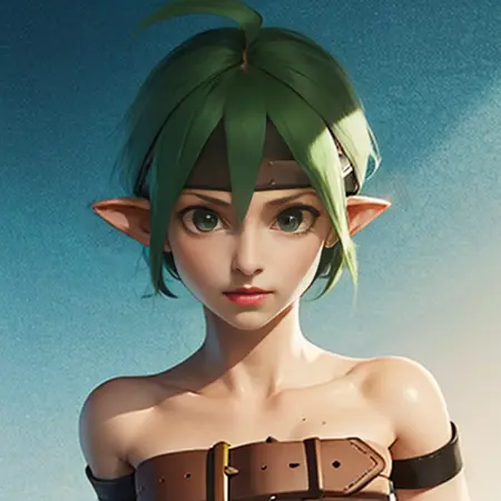女武神,精灵短发或短发,- 绿色头发,绿色眼睛,尖耳朵,- 棕色发带