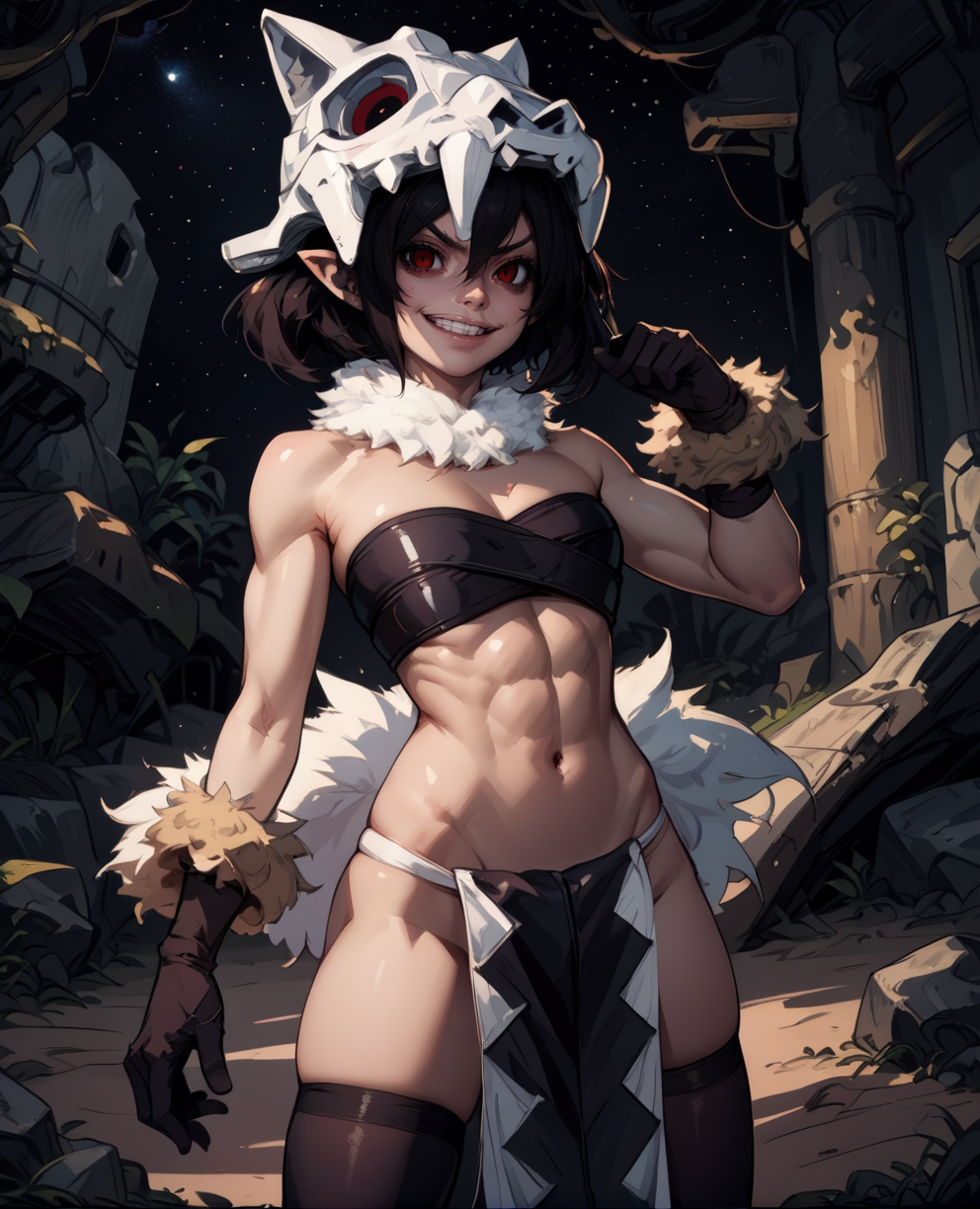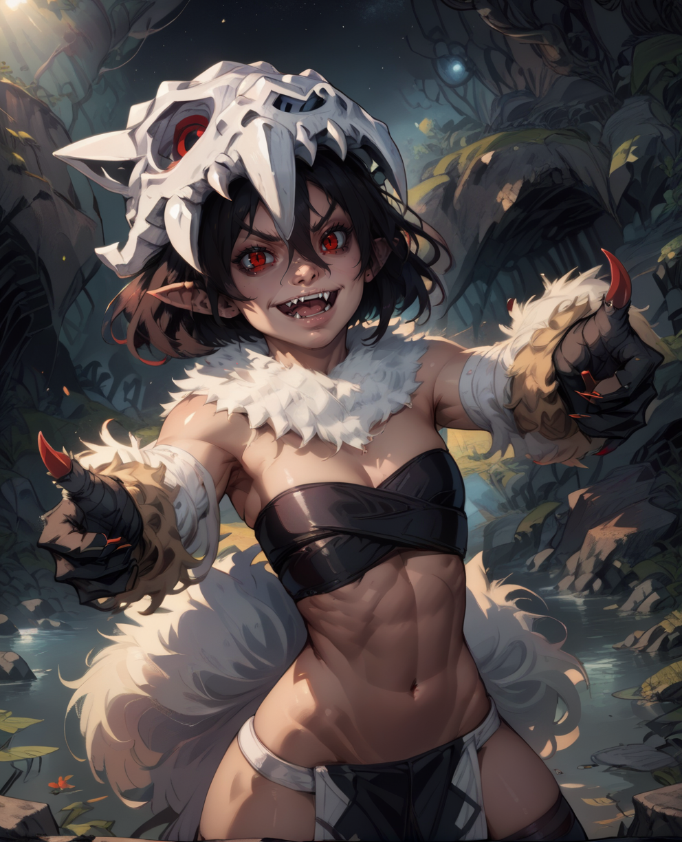 動物の頭蓋骨/骨のヘルメットは、出現確率が高め(望まない場合はNegに追加して低減可能)—トレーニングでは非装着で実装。