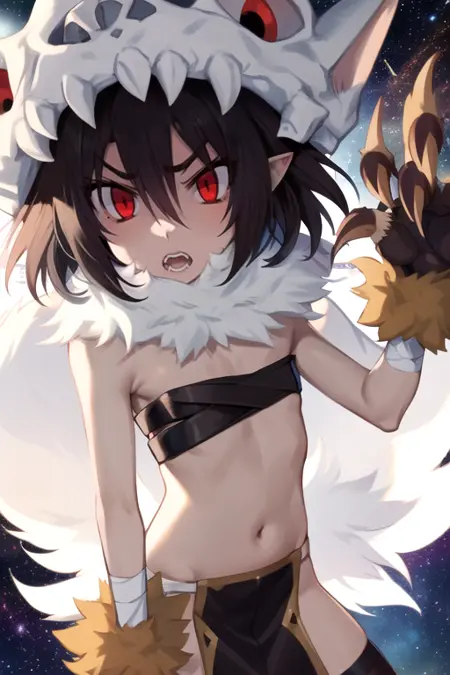 高筒袜或腿部绷带,手臂绷带,露脐装或肚脐露出,裹胸,手套,爪子,毛边装饰或白色毛边,腰布,——白色内衣或丁字裤