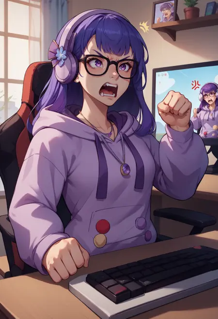 rdenShgunAnv, 보라색 머리카락, 측면 머리카락, 보라색 눈