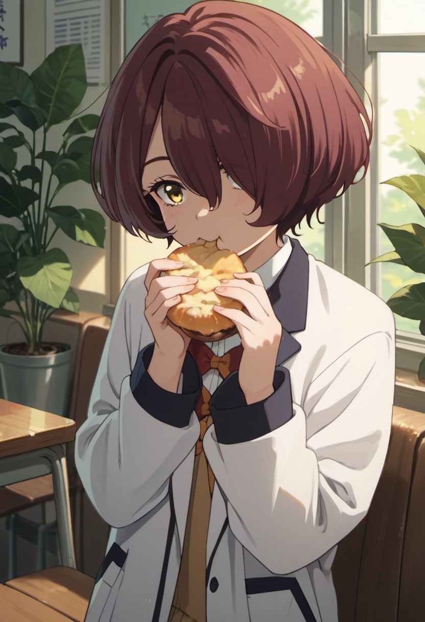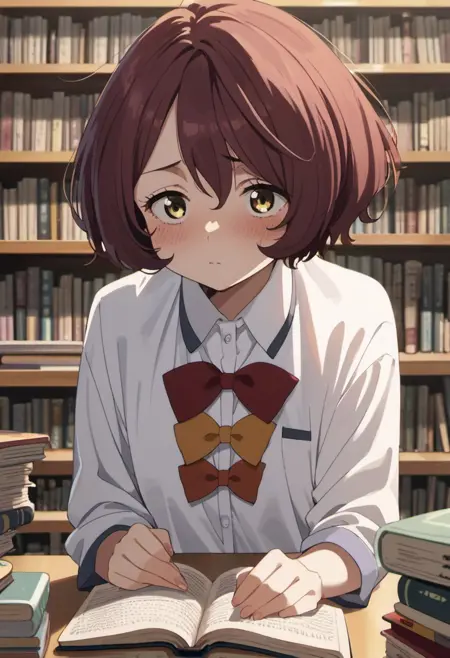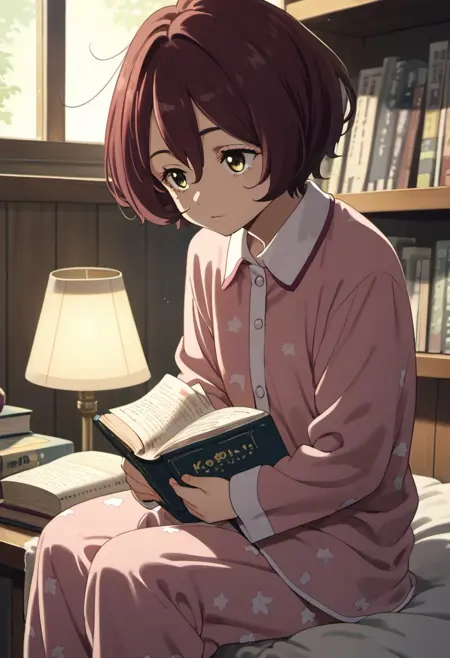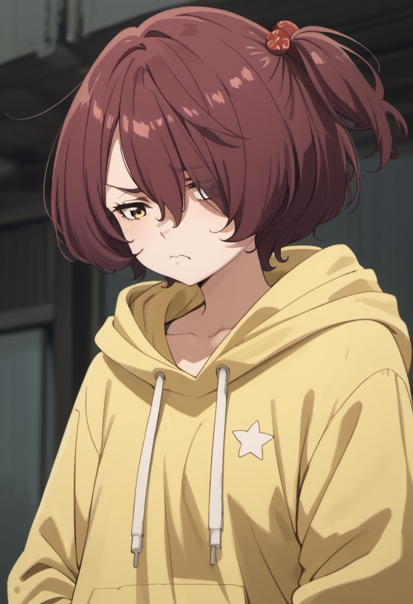 トリガー単語: komari chika、ショートヘア、赤みがかった茶色の髪、黄色い目