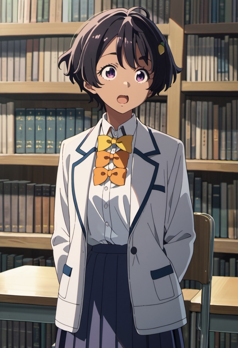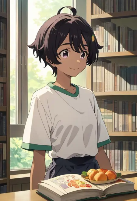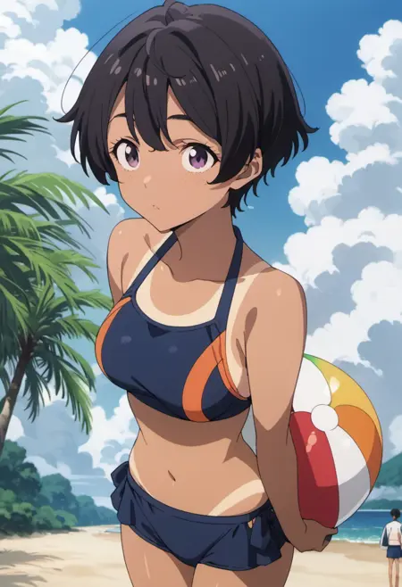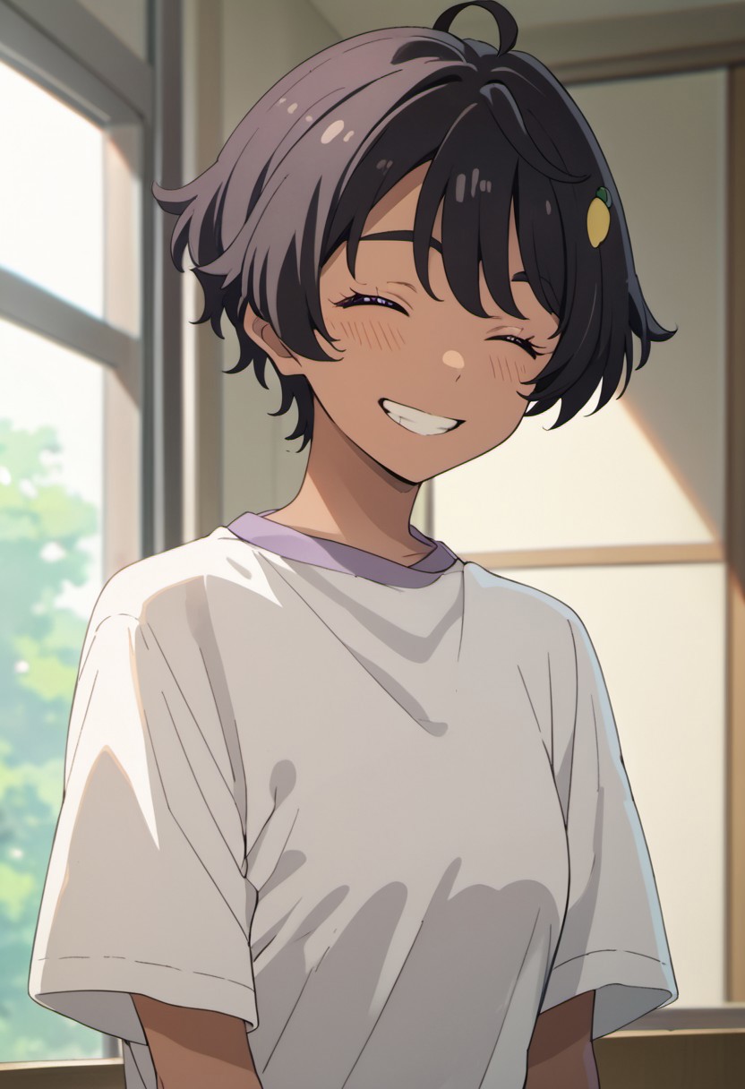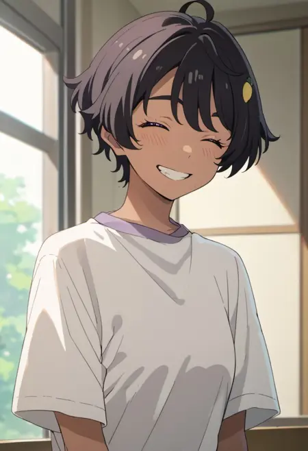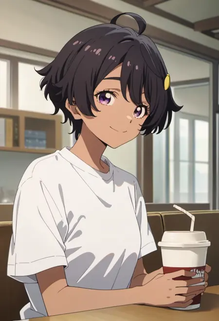 트리거 단어: yakishio remon, 검은 머리, 단발, 보라색 눈, 검은 피부, 검은 피부를 가진 여성