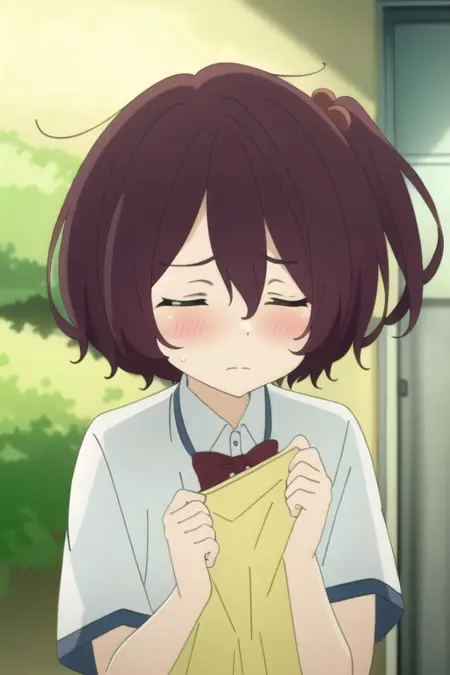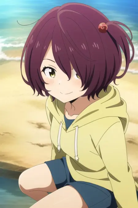 트리거 단어: komari chika, 단발, 붉은 갈색 머리, 노란 눈