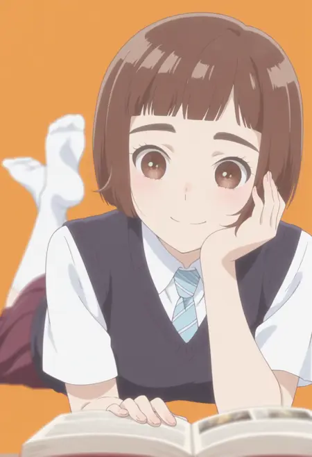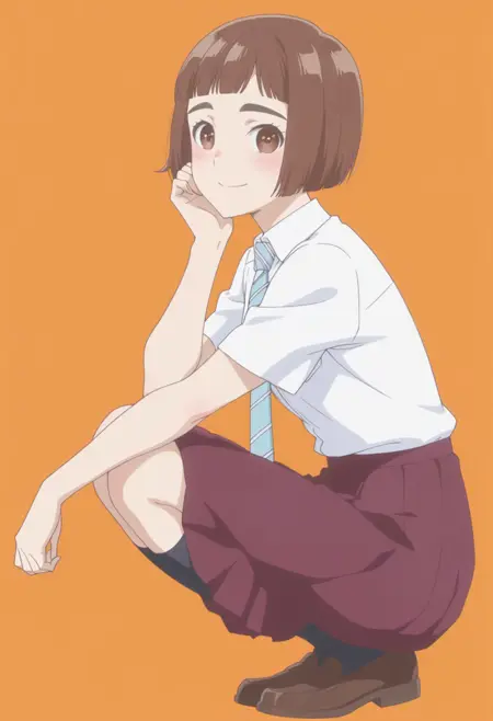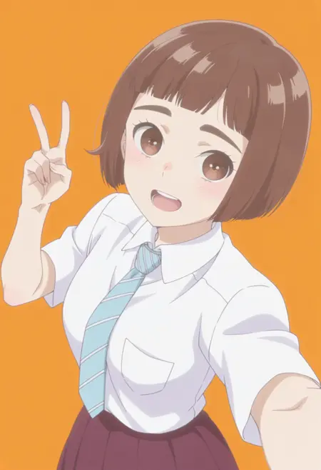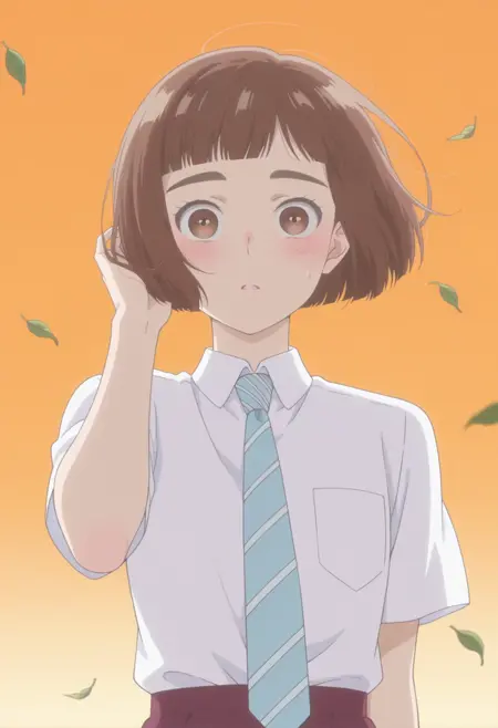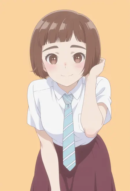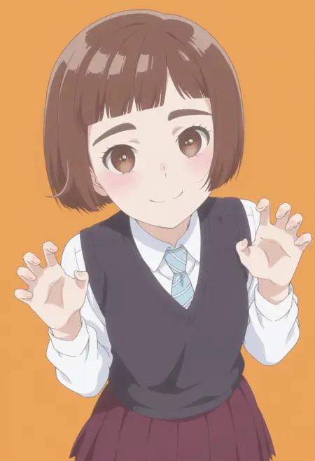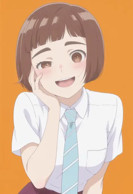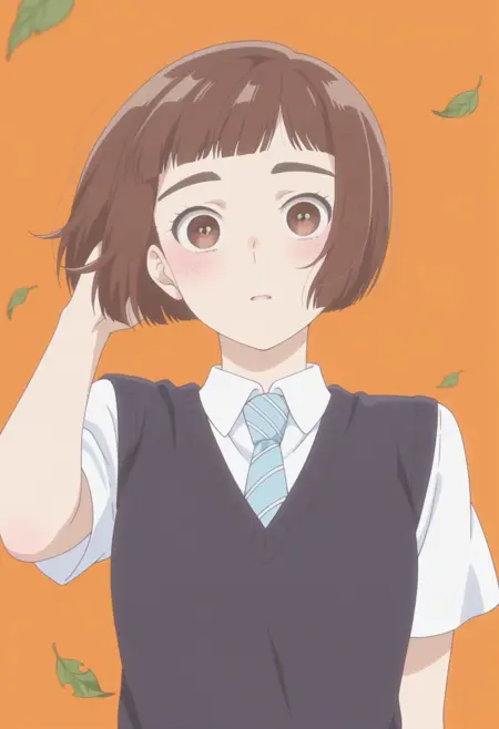 onodera kazusa, brown eyes, thick eyebrows, brown hair, short hair, bob cut, blunt bangs