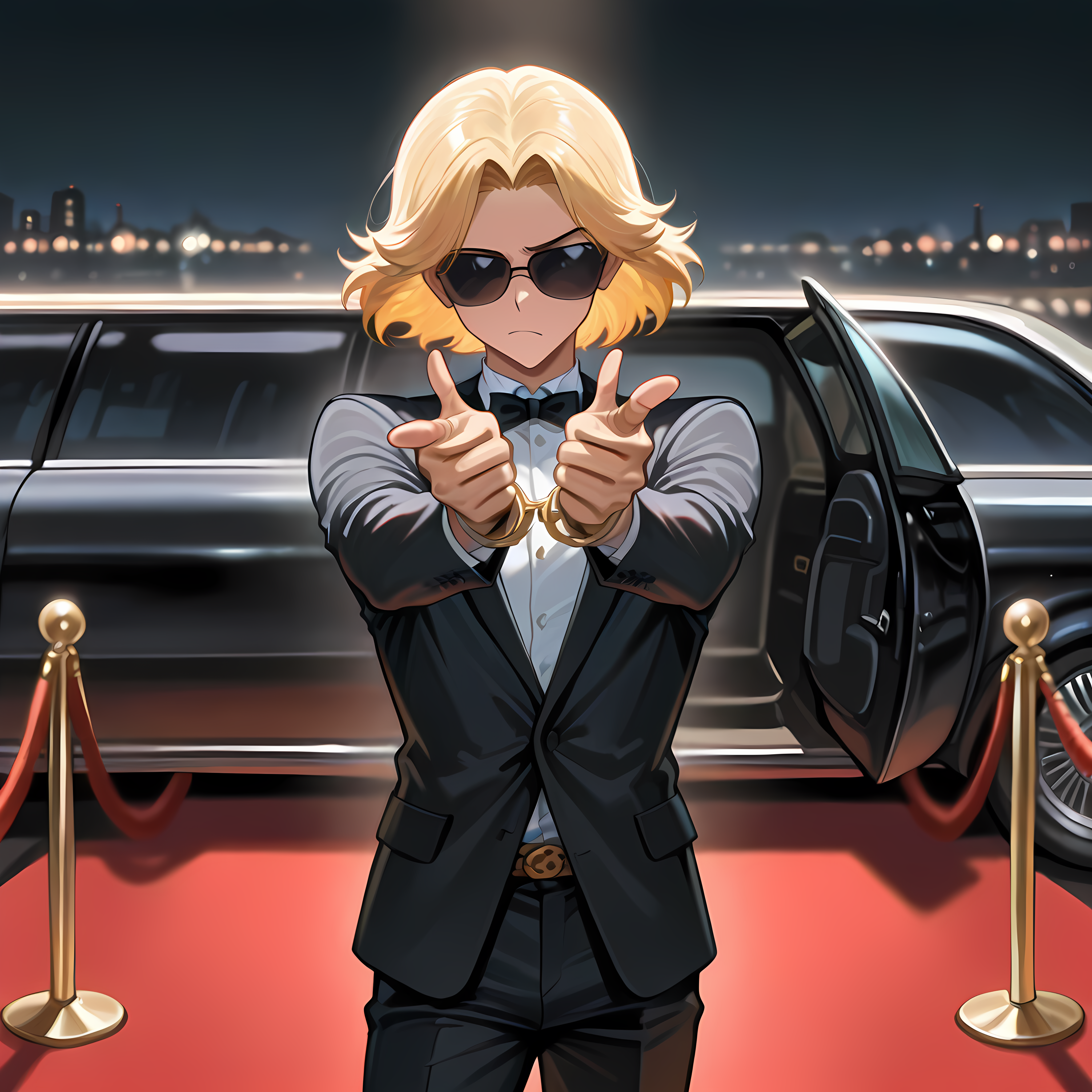 可选:红毯、人群、相机闪光