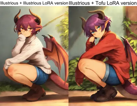 Illustrious | Tofu バージョンは、私がGreaが好きで、当時はSDXL/Pony用のものがまだなかったため、私の最初のLoRAのバージョンです。TofuバージョンはAnimagineXLと問題なく動作すると思います。