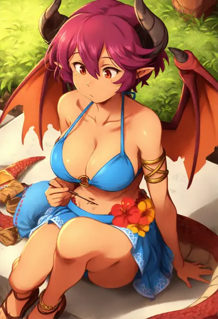 全体的に、このLoRAはかなり柔軟です。髪や目の色、スタイルを変更しても問題ないはずです。ただし、色の変更がうまくいかないときは、重みを追加したり、デフォルト色をネガティブに設定したりする必要があることがあります。デフォルト衣装のハイウエストスカートは、色の変更にやや手間がかかります。翼は若干難しいです(例:blue wings は翼を完全に青にしましたが、時々尾にも色が飛び散り、black wings は膜部分がデフォルトの色のままでした)。