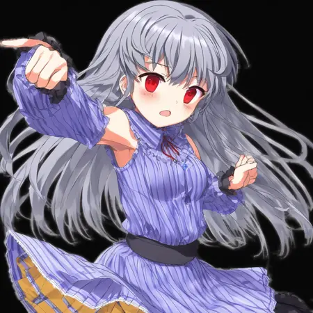 트리거 단어: Emily_Grimm_OtogiFrontier, 회색 머리, 붉은 눈, 긴 머리