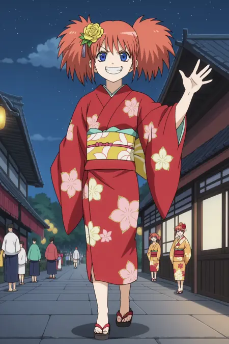 Kagura ピンクの花柄着物(ツインテール)| 短めのツインテール、ピンクの着物、浴衣