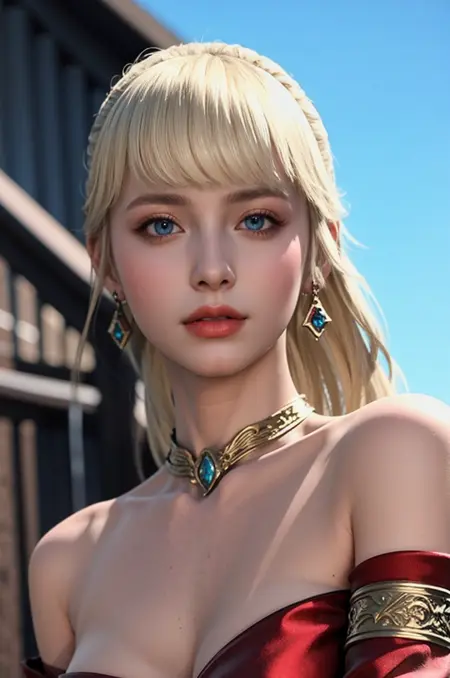 태그: 블론드헤어, 블루아이즈, 레드드레스