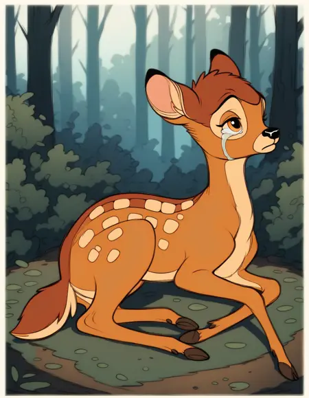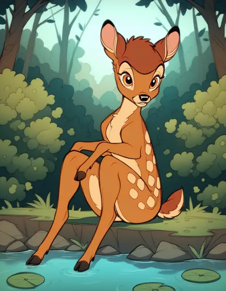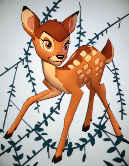 一只生活在森林中的年轻驯鹿王子,森林大王子的儿子,与兔子【跳跳】(/model/1128657/thumper-from-bambi-or-vk-stickers-style-or-illustrious) 和臭鼬【花花】(/model/1127917/flower-from-bambi-or-vk-stickers-style-or-illustrious) 是最好的朋友。