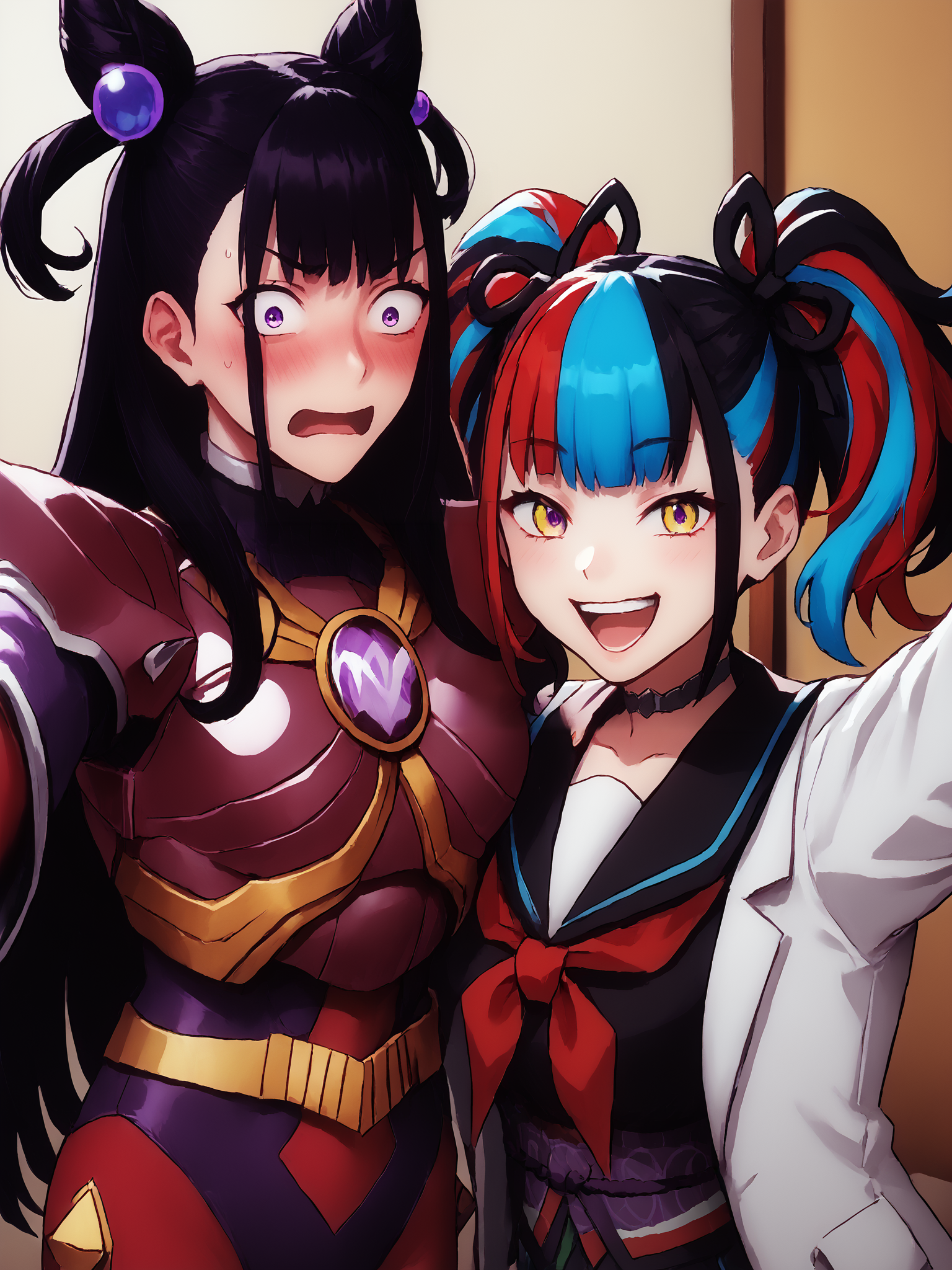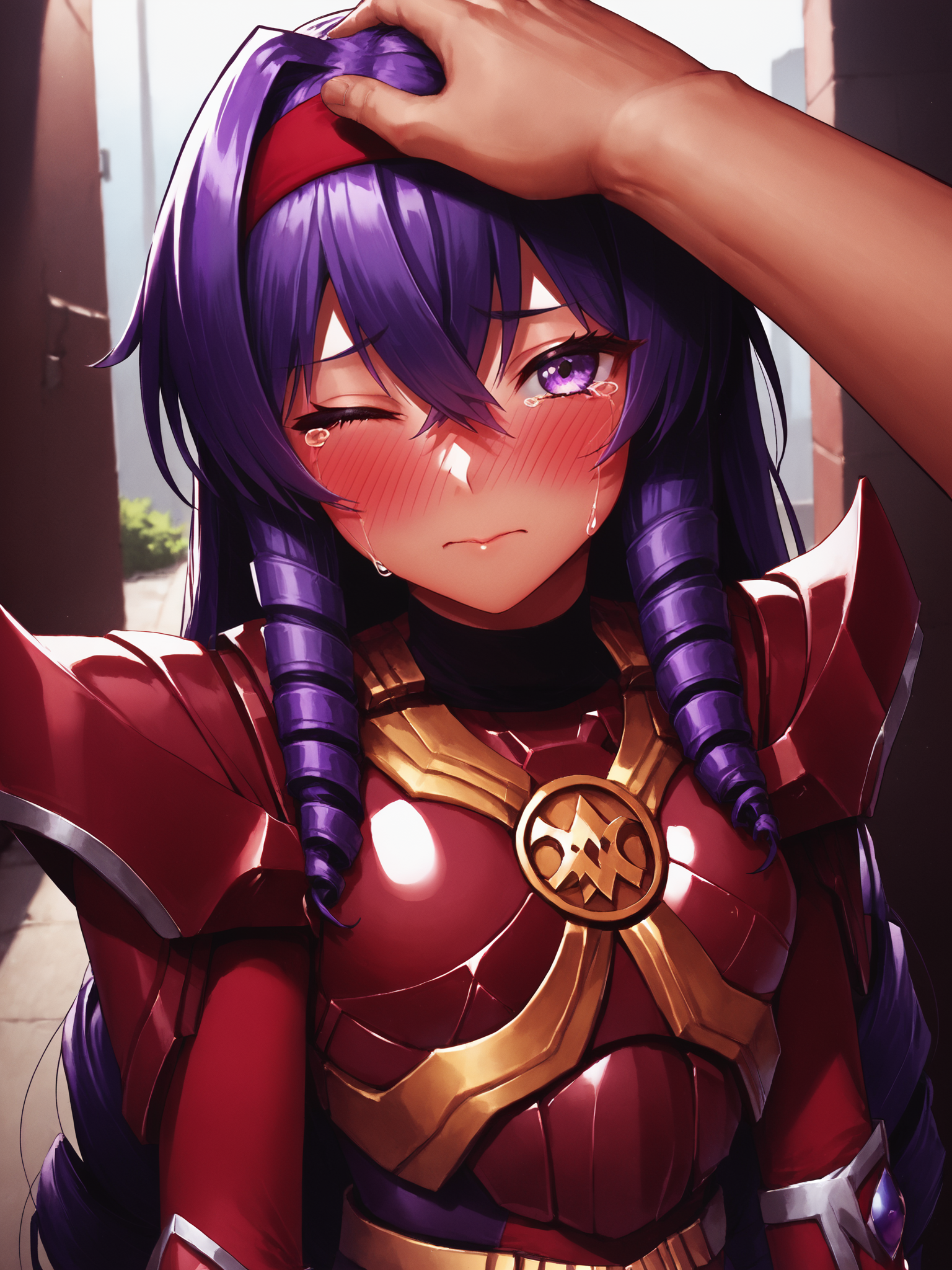 她护甲正面有四条对角线状的金色装饰,背部却没有,但AI似乎无法区分前后,依然会错误地在背部也生成这四条金色部分 *耸肩*。