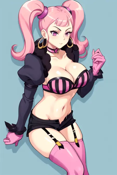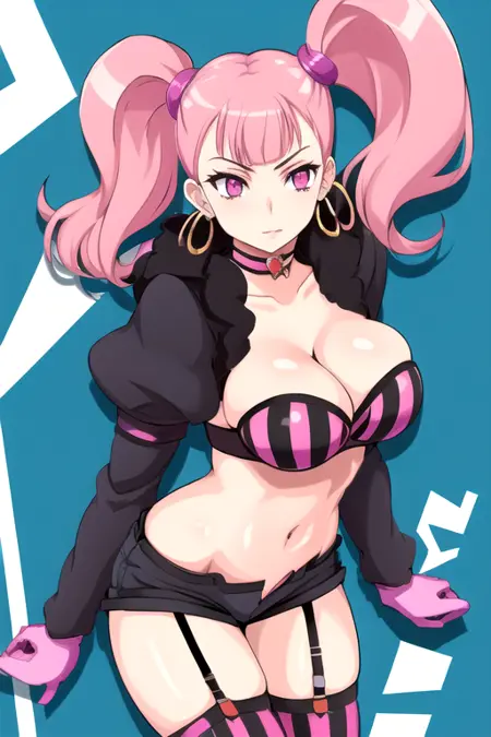 | 학습된 단어 | MocoEarth, 1girl, solo, long hair, large breasts, pink thighhighs, pink gloves, long sleeves, navel, cleavage, twintails, jewelry, collarbone, pink hair, hoop earrings, short shorts, choker, midriff, striped bra, puffy sleeves, pink eyes, pink bra, garter straps, black shorts, vertical stripes복사됨! |