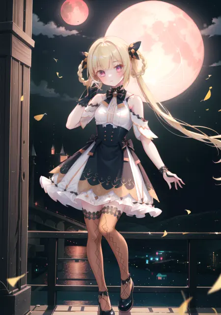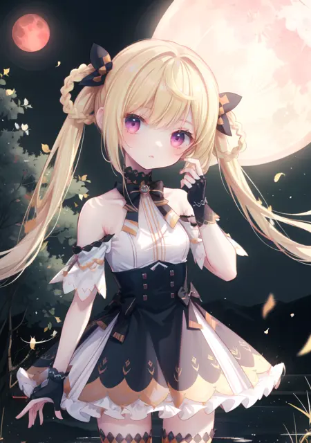 V1torch prompt:shian,twintails,lace bow,long hair,blonde hair,skirt,,circular yellow gemstone collar bow,gloves(诗岸双马尾蝴蝶结长发金发裙子衣领黄宝石手套)