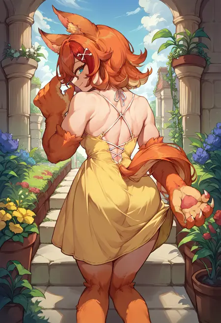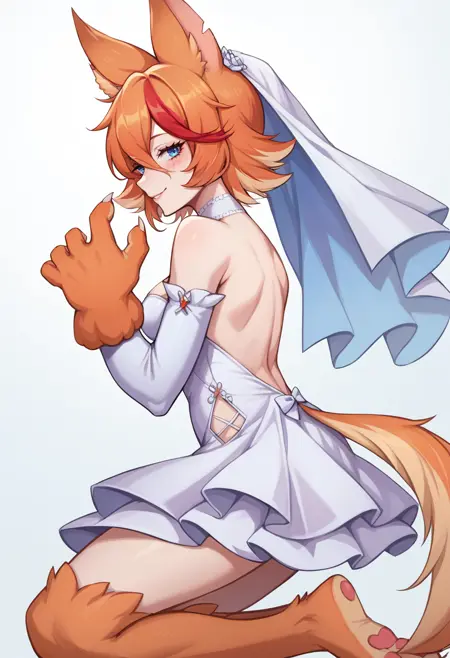 ChamBuPu, 파란 눈, 다채로운 머리카락, 중간 길이 머리, 동물 귀, x 머리 장식, 꼬리, 동물 손, 동물 발