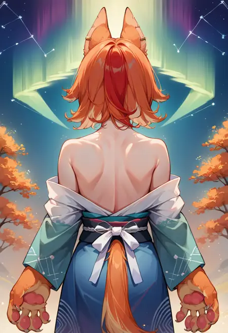 BPDefault, 파란 눈, 다채로운 머리카락, 중간 길이 머리, 동물 귀, x 머리 장식, 날카로운 목걸이, 동물 손, 검정 레오타드, 복부 절개, 중앙 열림, 가슴 선, 레터맨 자켓, 빨간 자켓, 짧은 자켓, 검정 반바지, 게터 스트랩, 허벅지 스트랩, 동물 발, 꼬리