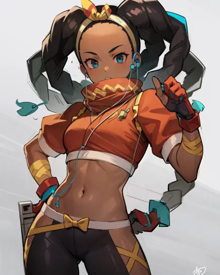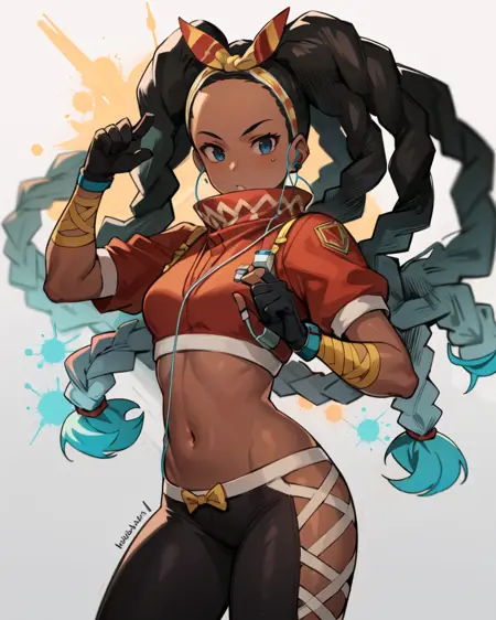 kimberlyms, 手套, 裤子, 短款上衣, 耳机, 小腹, 短发, 花型发带, 臀部开叉