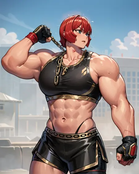 marisams, 手套, 健美女性, 腹肌, 小腹, 链条, 短裤, 运动bra