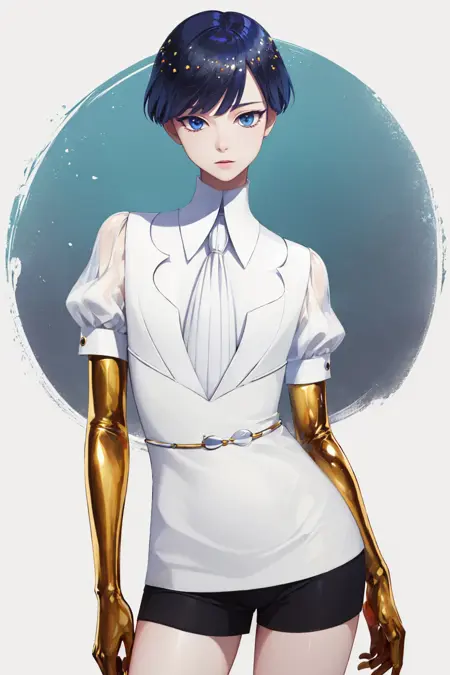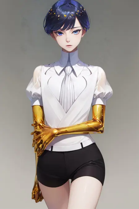 Default Outfit: gem uniform, necktie, puffy short sleeves, shorts
