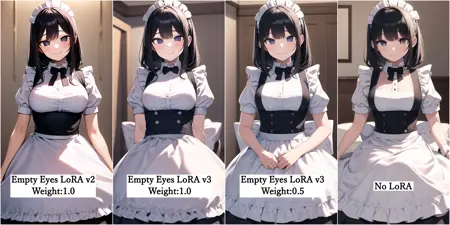 使用此 LoRA 时,若仅使用内补绘制(inpaint)重绘面部或眼睛,可能会得到更好的图像效果。