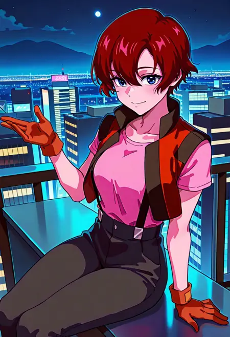 suspender vest, pink short sleeve shirt,gloves, pants, shoes
