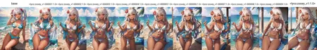 So far it favors her summer look, so add "head flower" to negatives to remove it.